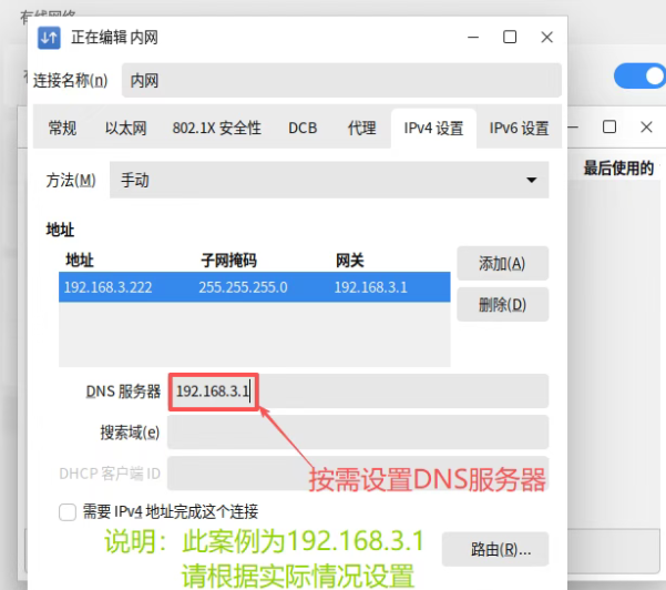 17.按需设置DNS服务器(说明:此案例为192.168.3.1,请根据实际情况设置);