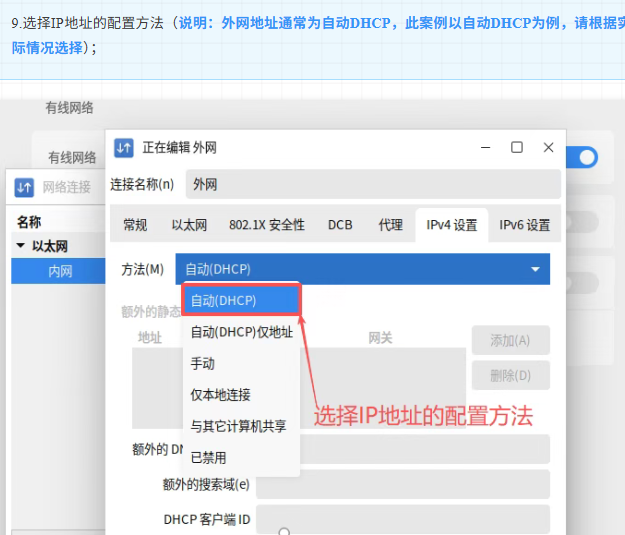 12.选择IP地址的配置方法(说明:内网地址通常为手动配置,此案例以手动为例,请根据实际情况选择);