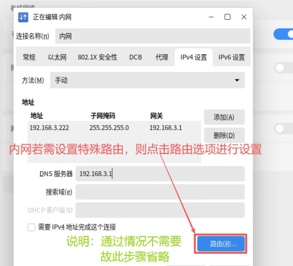 18.内网若需设置特殊路由,则点击路由选项进行设置(说明:通过情况不需要,故此步骤省略);