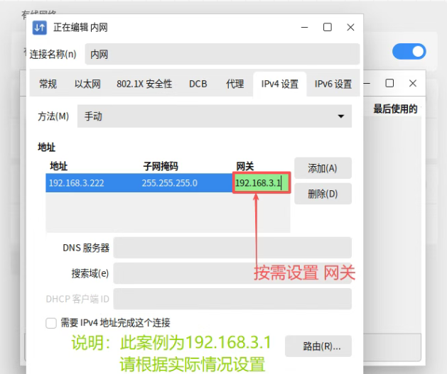 16.按需设置网关(说明:此案例为192.168.3.1,请根据实际情况设置);