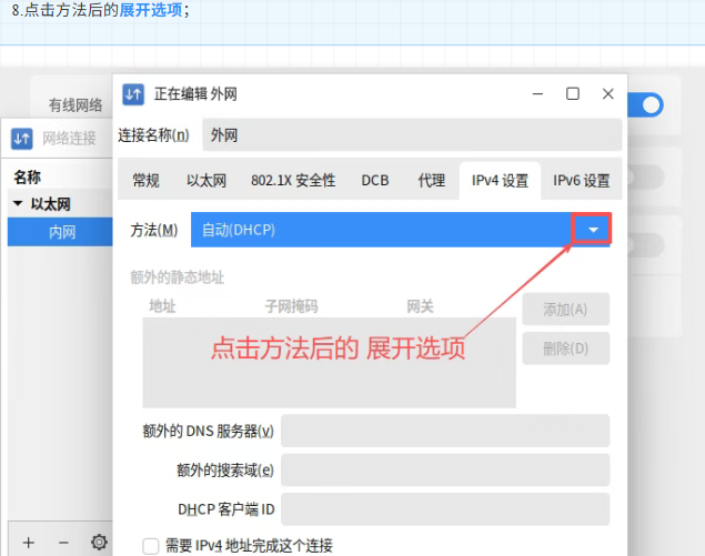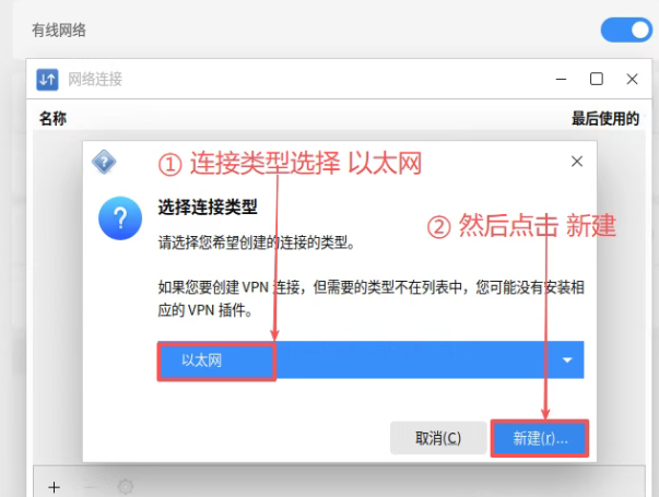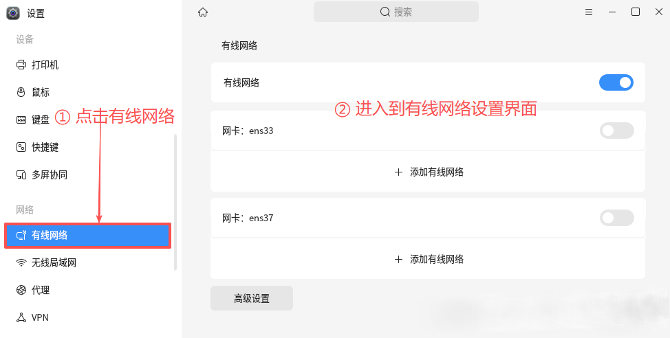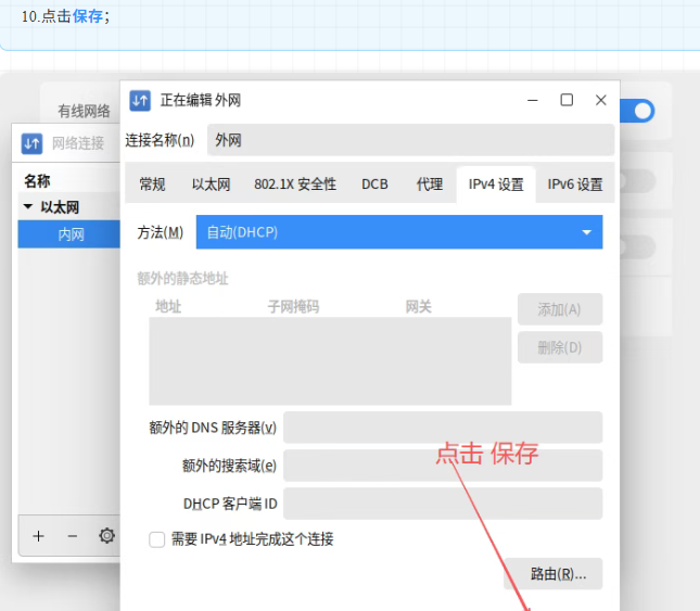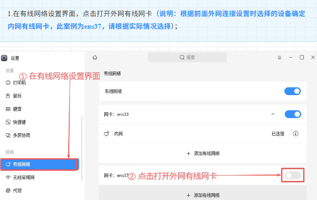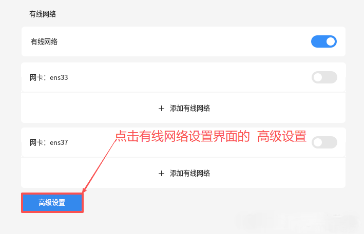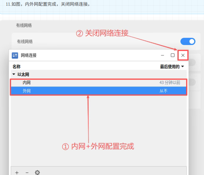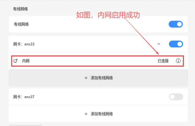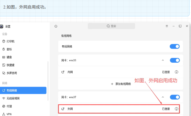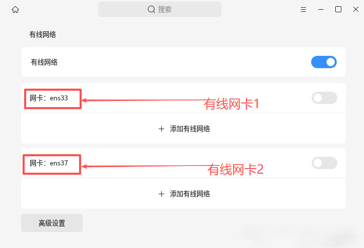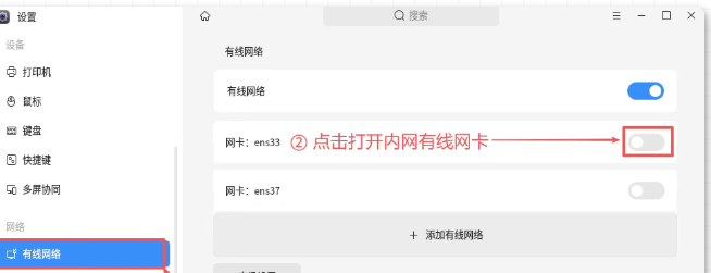 由于部分工作环境存在双网环境(说明:内网和外网是两根独立的网线),需要在麒麟系统上同时使用双网环境(说明:即同时插上两根网线)。
