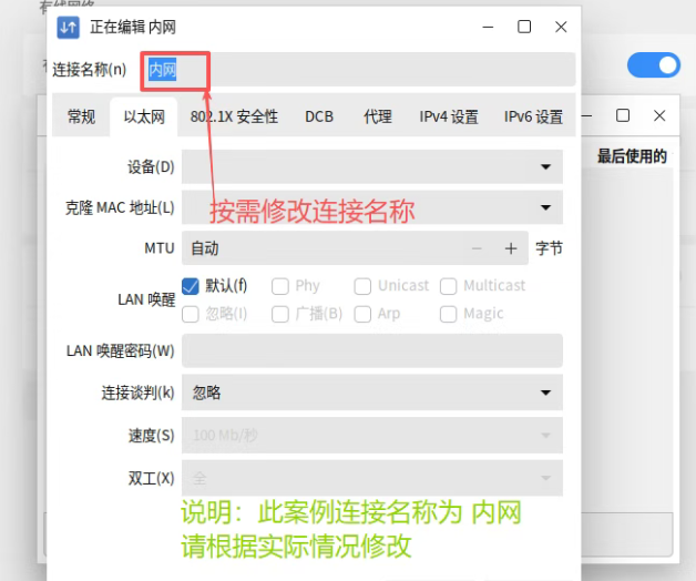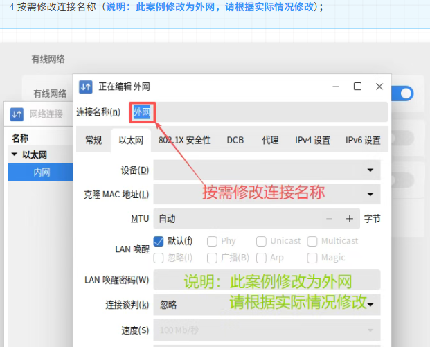 7.按需修改连接名称(说明:此案例修改为内网,请根据实际情况修改);