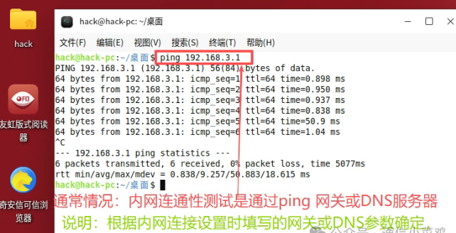 通常情况:内网连通性测试是通过ping 网关或DNS服务器(说明:根据内网连接设置时填写的网关或DNS参数确定,本案例网关和DNS均是192.168.3.1,请根据实际情况修改)。