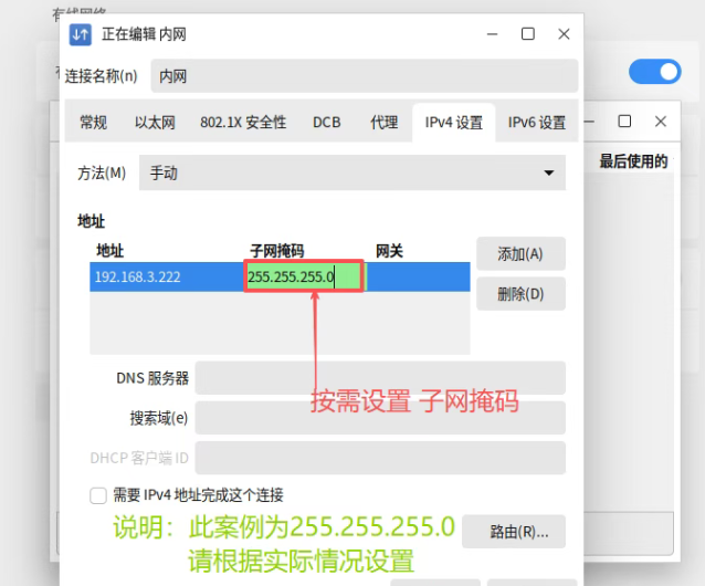 15.按需设置子网掩码(说明:此案例为255.255.255.0,请根据实际情况设置);