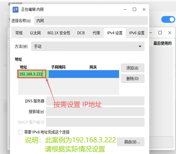14.按需设置IP地址(说明:此案例为192.168.3.222,请根据实际情况设置);