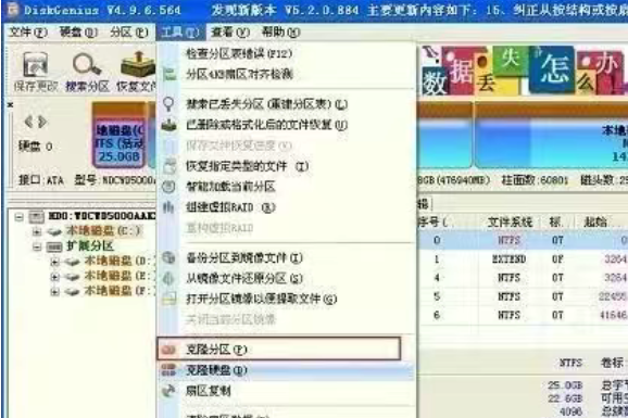 仍然使用DISKGEN软件工具,依次点击“工具”选项-“克隆分区”,接着点击原硬盘主分区,及固态硬盘的主分区,最后点击“开始”就可以完成两块硬盘分区的复制了