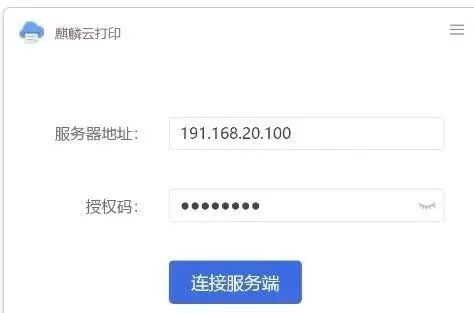 1.麒麟系统客户端根据系统架构(amd64、arm64)安装对应的客户端,点击桌面左下角“软件商店”按钮,弹开软件商店界面,在上方搜索框输入“云打印”,会搜索到用户端和服务端两个版本,点击用户端下载,系统自动安装。安装完成打开软件,输入Win服务端ip地址和授权码。