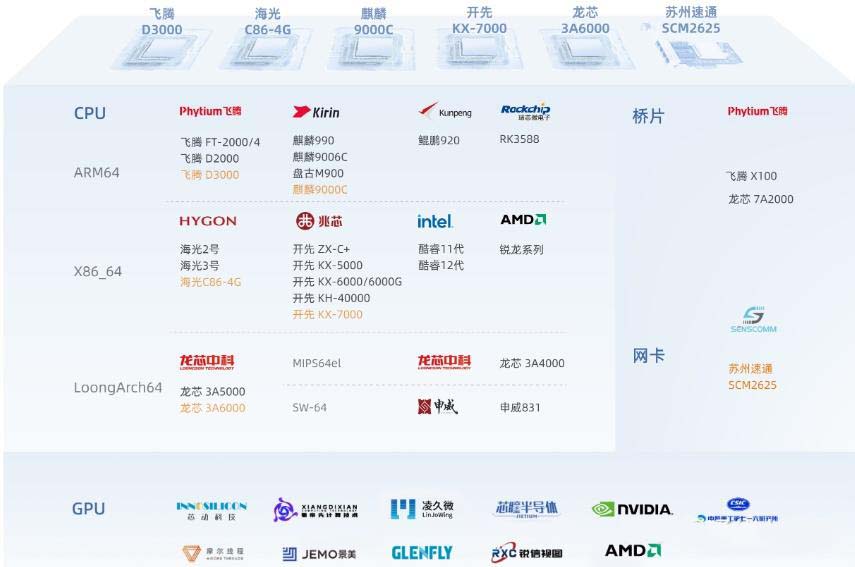 麒麟系统(KylinOS):全称银河麒麟,是由国防科技大学主导研发、麒麟软件有限公司维护的国产操作系统,是一款适配国产软硬件平台的操作系统,支持国内外主流处理器架构,并不断使能GPU、桥片等各种新硬件。