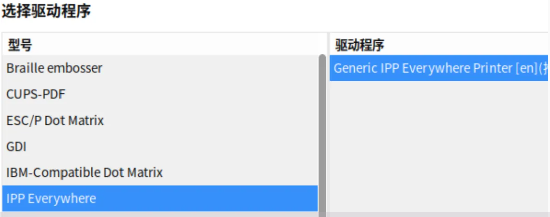 打开打印机属性页面,如图所示,更改 生产和型号 为 Generic IPP Everywhere Printer 选项。