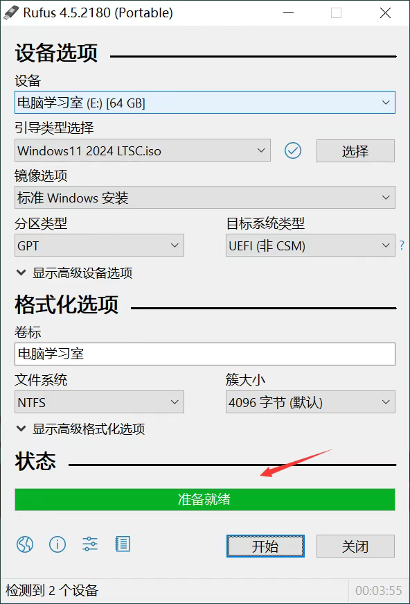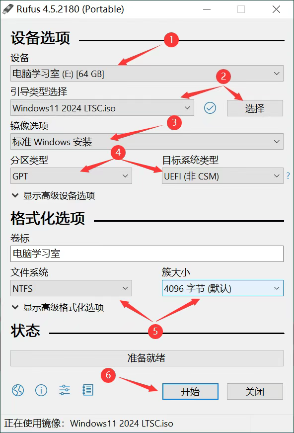 设备:选择你的U盘盘符。
